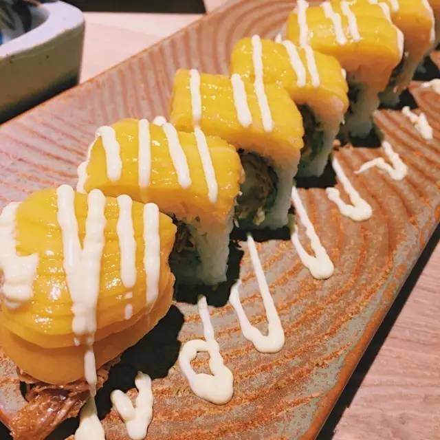 芒果大虾卷做的超有层次感!而且都是现做的,每卷寿司用一个小芒果,中间是炸虾,外面有美乃滋酱,外软里酥。太爽了!