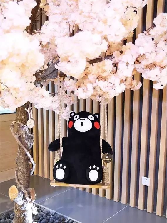 店里有颗樱花树,爱卖萌的熊本熊没事就爱去那荡荡秋千~打卡!
