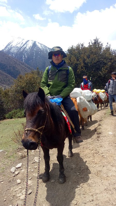 队员有骑马上山的、徒步上山的!