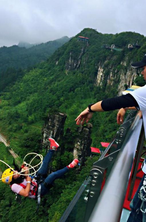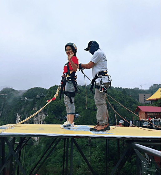 老段和段女郎从300米高的玻璃桥纵身一跃……