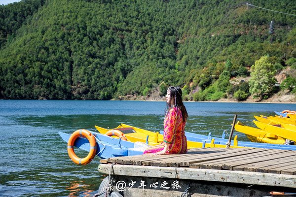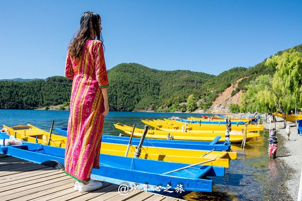 里格最大的特色就是七彩“猪槽船”,各种颜色的“猪槽船”都有,拍起照来贼好看,“猪槽船”又名独木舟,因其形状如一只长长的猪槽而得其名,这种“猪槽船”是摩梭人唯一的交通工具。△