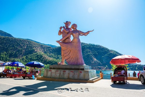 很多人都以为泸沽湖是云南的,其实泸沽湖有三分之二在四川,只是丽江过来方便很多人才这么认为。这是四川与泸沽湖的分界线,没错,走着走着就到云南了哈哈,回去可以跟朋友吹牛说自己徒步从四川穿越到云南。△