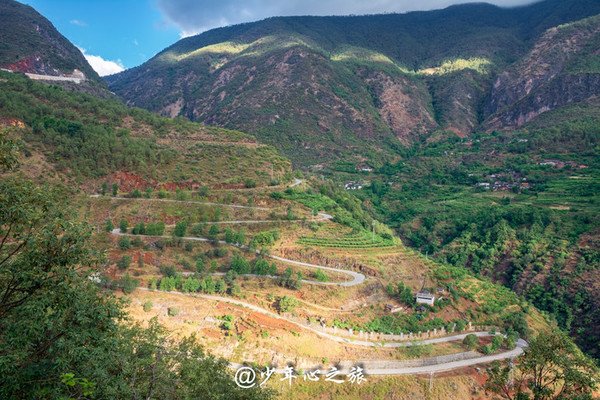 在半路有几个点司机会让我们下来拍照,这是其中一个,九转十八弯,是的,刚刚就从那里开上来的,回头看自己经过的路,有时会有种别样的精彩。△