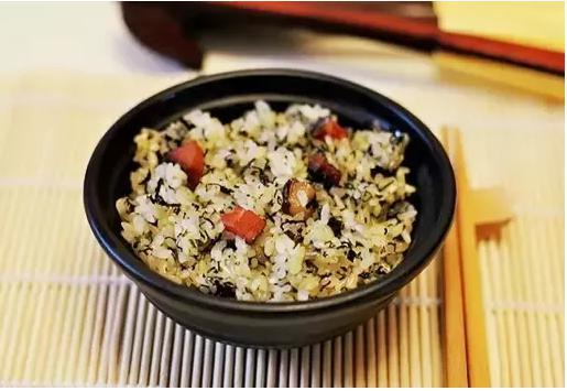 社饭是用山坡上的鲜嫩社蒿,洗净剁碎,揉尽苦水,焙干,与野蒜(胡葱)、腊肉干等辅料掺合糯米蒸或焖制而成。其味鲜美,芳香扑鼻,松软可口,老少皆宜。
