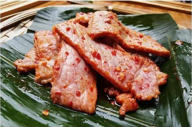 腌肉也是侗族特色美食,做法与腌鱼相似,用肥瘦掺半的猪肉,切成块状,放入瓷坛腌制两个月,即可取出炒吃,在炒好的腌肉上,撒上绿色的葱花,味道酸辣鲜美,开胃,极具诱惑力。