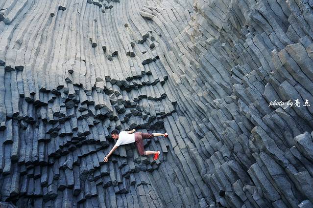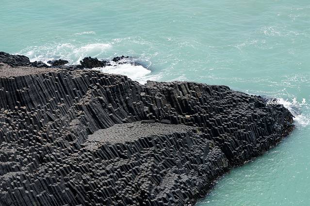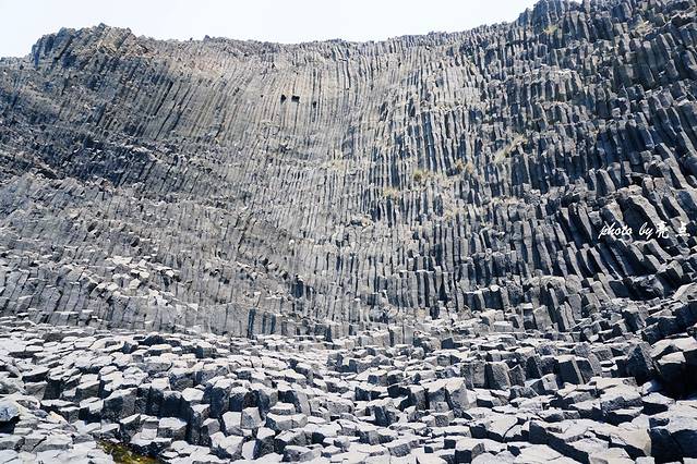 是火与水的碰撞创造出如此奇特的地貌,南碇岛很可能来自于一次最强劲的火山喷发。是一股股玄武岩熔岩从地壳的裂隙涌出,像河流一样流向大海,遇到海水迅速冷却收缩变成固态的玄武岩,喷发出的岩浆在冷凝结晶过程中发生了爆裂,而且收缩力非常平均,形成了规则的柱状体图案,仿佛专门有人摆布过,这些图案通常呈有规则的多边形柱,这大自然的神来之笔,地质学上称为玄武岩柱状节理。