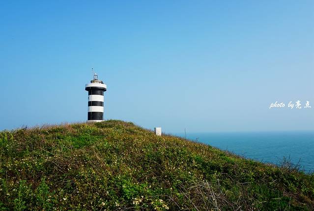 弃舟登岸,沿着岩柱石自然形成的台阶石道,拾级而上,只见山依海势,海借山景,海天一色。南碇岛海拔不高,很快就能到达岛上的制高点——灯塔。灯塔周围的一小片草地是岛上仅有的绿色植被,海岛上的大风是留不住沙土的,这一小片草地如沙漠绿洲般珍贵。