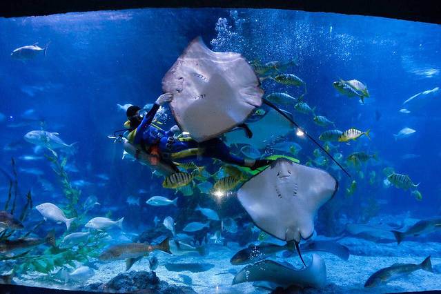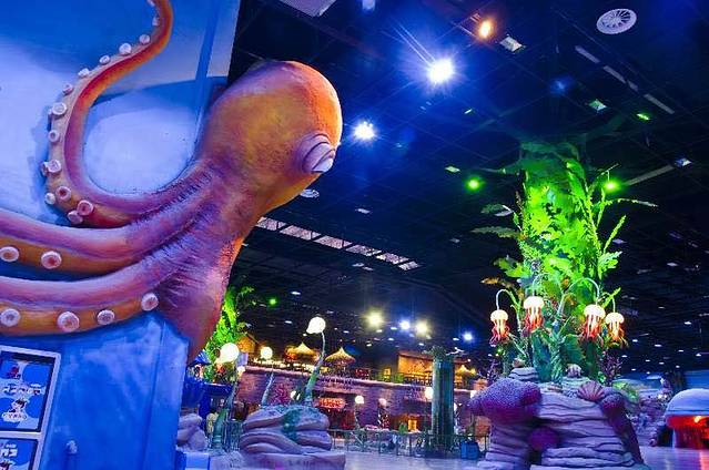海底隧道,各种叫不出名字的鱼儿在头顶游来游去,身临其境的感觉很奇妙,场内有潜水员和美人鱼表演,和鱼儿们一起舞蹈美轮美奂。