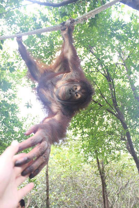 小猴子特别可爱,猴妈妈一直保护着小猴子,视线一点也不离开,母爱满满。一直上窜下跳活泼敏捷,喂食以后还亲切的握了握手。