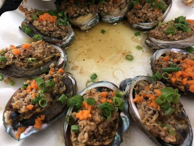 简单逛了逛决定去吃海鲜刚好大东海附近有一个南中国海鲜广场我们就去了,直奔攻略推荐的阿浪海鲜加工店,务很好可以给满分,主动帮忙烫碗筷,上菜也快,还经常帮忙倒骨碟。点了有点小多,简单讲几个#清蒸石斑鱼# 大概1斤左右活鱼,2个人吃这个大小的就够了。处理得很干净,鱼肉也细嫩好吃,口味咸淡掌握不错。#椒盐皮皮虾# 好吃是好吃,虾都是活的,肉很鲜甜,但实在放油太多,虾头都是油。#芒果螺# 第一次吃,小个头的先试试水。口感有点甜,是海鲜本身的甜,口感比常吃的花蛤要好一点。但是泥沙没有吐干净,吃到好几个有点沙,还有两三个没开口的。#蒜蓉蒸鲍鱼还有海胆# 撇开巨多蒜蓉量这件事,调味还可以。个头不是巨大的,但胜在新鲜,都和壳没分离,自己拿筷子戳戳戳也蛮有乐趣。#蒜蓉粉丝蒸扇贝# 终于见识到了本地的扇贝,壳是红的,个头也是很迷你,但和生蚝一样胜在新鲜。不过给我选的话还是去大连吃个爽吧。#四角豆# 当地特色的菜系,口感还不错。#椰子饭# 就是椰肉和糯米饭的组合,加了枸杞芝麻,够甜够糯。#清补凉# 其实是隔壁家的,椰子味道真的好浓,我到了这里几乎完全不想喝奶茶,好喝的饮料实在是太多了。