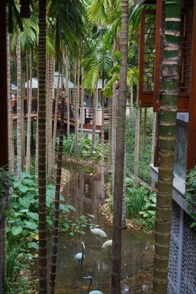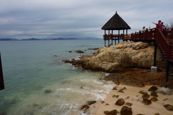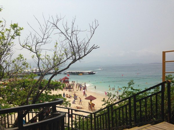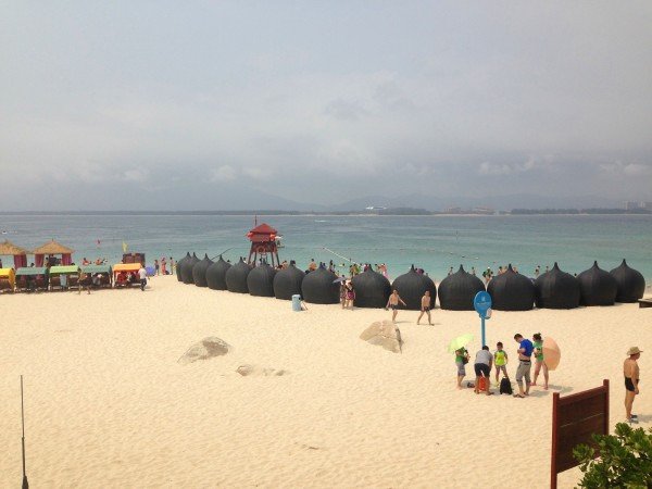 亚龙湾被称为天下第一湾,这么大的口气必须去看看究竟有多牛,到了以后略微有那么点失望,海水的水质很一般,和大东海几乎毫无差别,海滩上人潮汹涌,就更加毫无美感了,但是机智如我,和他们挤在一起看着不蓝不绿的海水简直是耽误时间,好在亚龙湾五星级酒店星罗棋布,一个挨着一个,在对海滩失望以后,我俩转战酒店,避开人潮,是多麽明智的决定