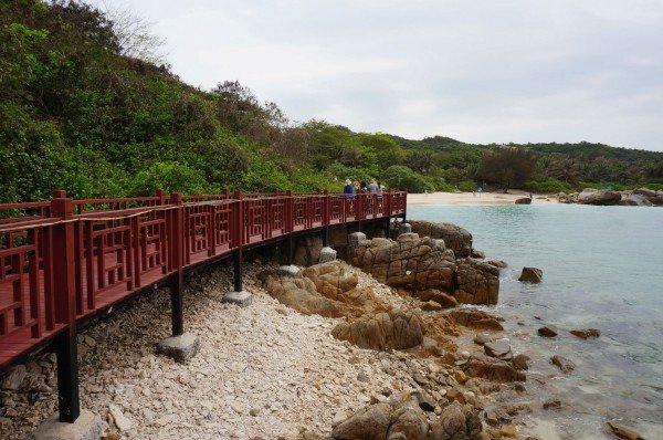 三亚的景区一般都是先乘坐巴士或电瓶车才能到达园区中的景点,坐在电瓶车上在迂回的山路上盘旋,弯度比较大,就像坐过山车一样的惊险刺激~
