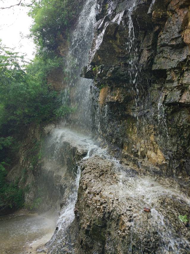 路上的瀑布,姑且叫瀑布吧,微型的,不过站在下面很凉快。