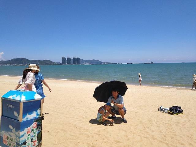三亚湾 ,海水颜色最漂亮,适合自驾,沿着 三亚湾 路看海景,有很多免费停车场,可以在沙滩边停车,直接在沙滩上漫步,沙特别细,就是要注意防晒, 三亚 的太阳不是闹着玩的,烈日下的海水极其漂亮,但海水不是特别干净,可能是因为正对着市区, 三亚 河