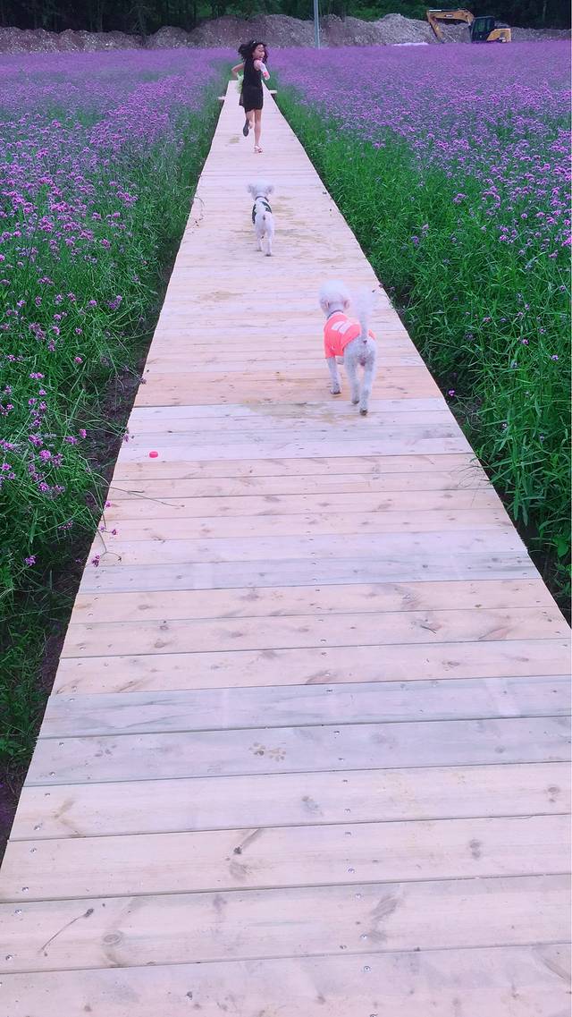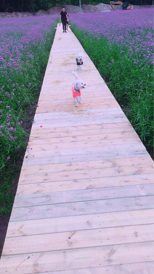 因为是下午比较晚,比较凉爽才过去去,人不多,狗狗可以放开,全程狗狗散着跟着我们玩耍,吃吃草,打打架,里面很赶紧,也没弄脏