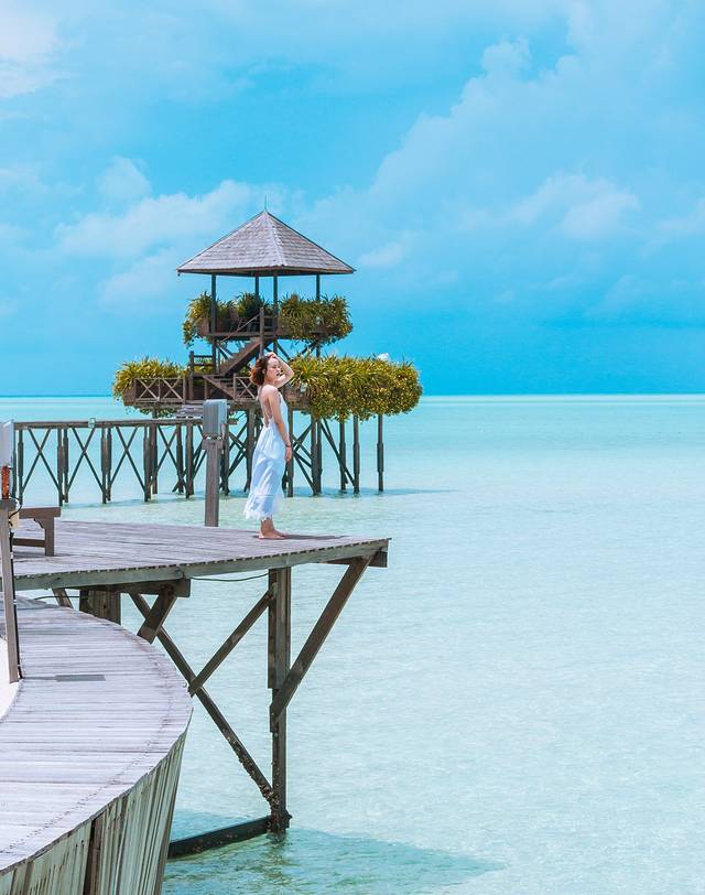 卡帕莱,位于马来西亚沙巴州仙本那镇,准确的来说它不能叫做岛屿,我更愿意把它称之为建立在海上的度假村。中国有很多城市都可以飞吉隆坡,当然你也可以飞到亚庇,然后转机到斗湖,从斗湖机场开一个半小时的车到达仙本那,从仙本那坐船40分钟到卡帕莱。仙本那是一个小镇,我只是把它作为中转站,当然也有很多人过来报名一日游,但我个人觉得没什么意思,来到仙本那不去几大度假村玩,那跟去马尔代夫住居民岛有什么区别。