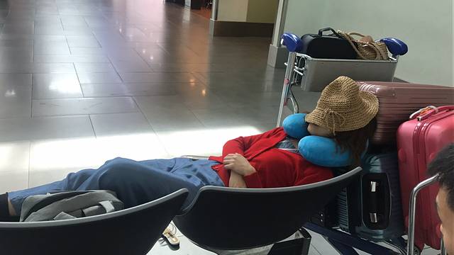 飞机是凌晨一点五十,这种通宵的航班真的很难受,但谁让它便宜呢,我最受不了低价的诱惑。早上六点四十到达吉隆坡机场,然后是转机,都说了红眼航班让人难受,但更难受的是转机等待时间超长,经过了一晚上的飞行,又是一整天在机场死去活来后,我们一行4人都已经是生无可恋的模样(见下图)。