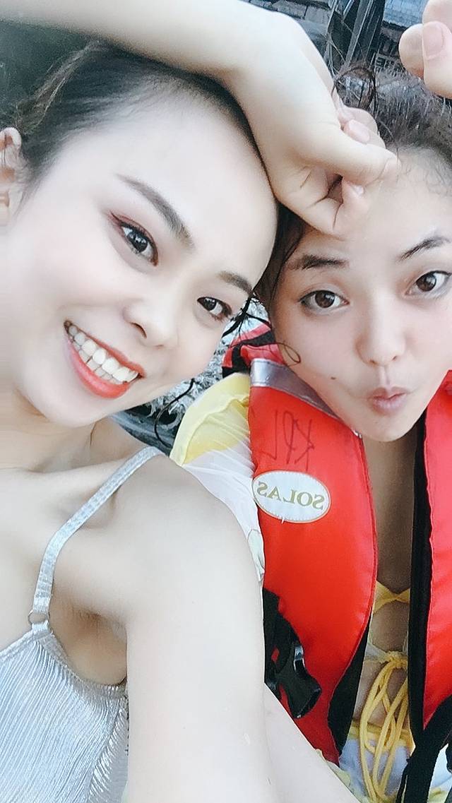 就不该把相机背来,完全没有拿出来的欲望,好不容易停下来小歇一会,下面我和小C开启美颜相机自拍模式。