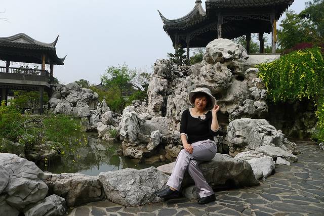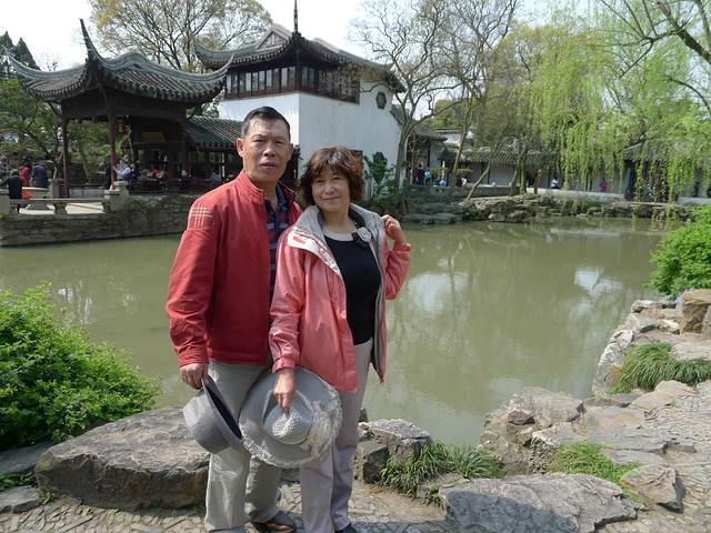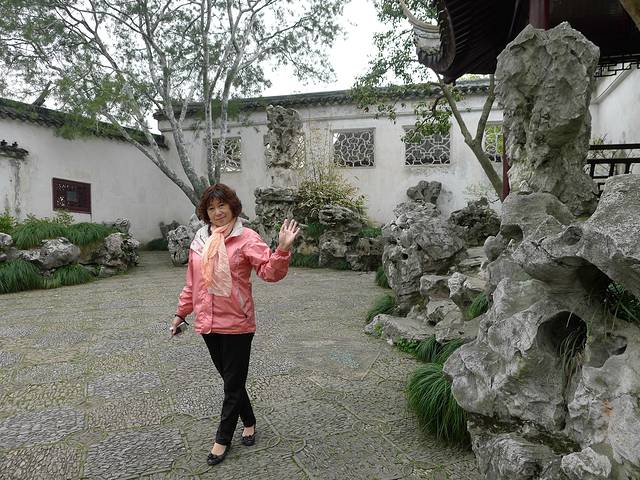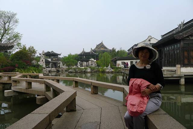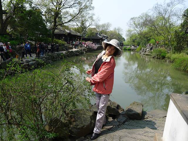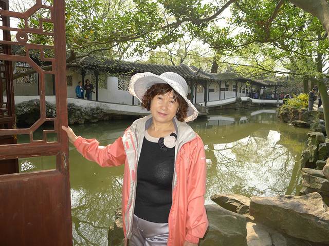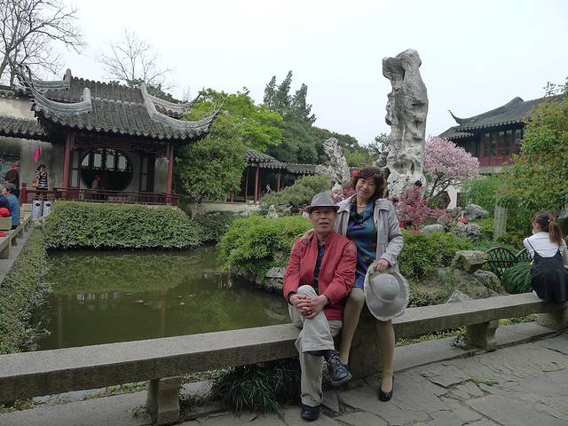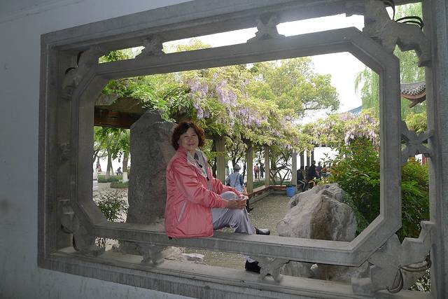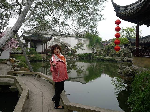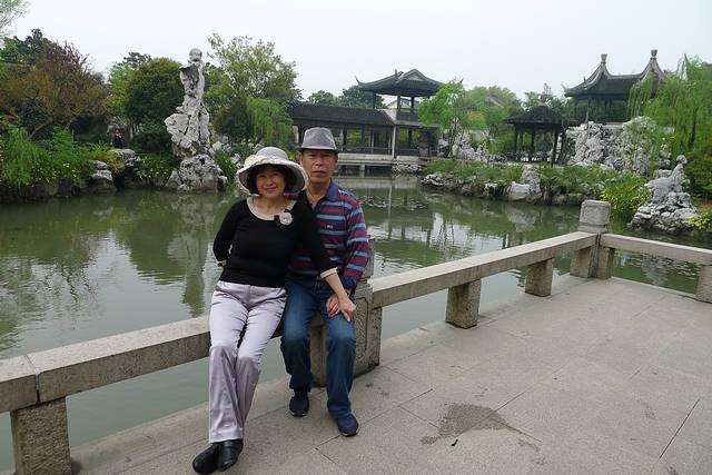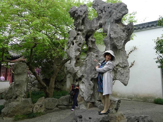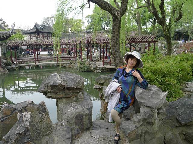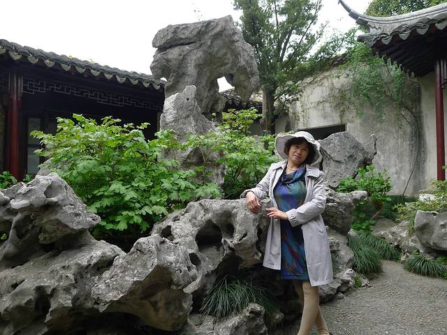 7/4:我发现清晨或是傍晚到景区,不仅游人少景色也好,初升的太阳和落日的晚霞照在人身上、景物上都 会增添色彩和美感,所以我们会尽早的出发、尽可能晚的返回,以至于爱睡懒觉老伴常常报怨起得太早。不到8点我们就到了拙政园,一进门就见照壁前由太湖石和各种鲜花布置的花坛分外漂亮,立即使我兴奋了起来,这里的美景真的是美不胜收。刚进园时光线好、游人少,拍了不少好照片,9:30后游人开始渐多。全园以水为中心,山水萦绕,厅榭精美,花木繁茂,具有浓郁的江南水乡特色。这里的美是我不能用语言、词汇能描述得出来的,拍照的水平也很有限,总之这里应该是喜欢园林艺术的人必到之处。12点多我俩才恋恋不舍地走了出来。这附近就是小吃街,匆忙解决午餐。13:30便进了狮子林。因园内“林有竹万,竹下多怪石,状如狻猊(狮子)者",又因天如禅师惟则得法于浙江天目山狮子岩普应国师中峰,为纪念佛徒衣钵、师承关系,取佛经中狮子座之意,故名“狮子林”。这里比拙政园占地小得多,也正是游团参观的时段,所以显得噪杂和拥挤。在我忙于躲避游人、欣赏景物、拍照留念时远在罗马的女儿来电话祝我生日快乐!我忙得早就忘了生日这回事。这的景色虽然也不错但我觉得远不如拙政园,给我的感觉有点像上海的豫园,由于占地小、景物多显得杂乱、拥挤。也许是由于游人过多,才加重了这种感觉。不过我俩玩得还是很尽兴,就这么一个小的景区我俩也转了3个多小时。