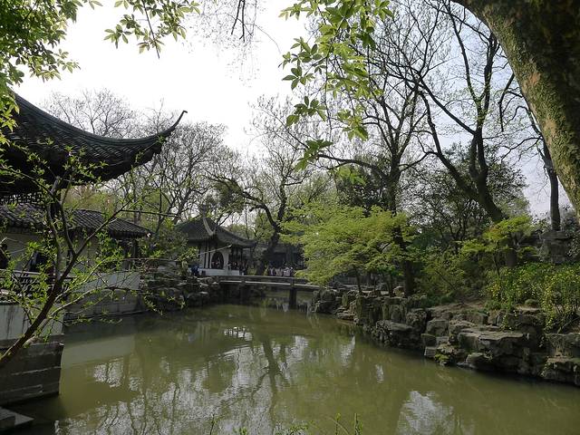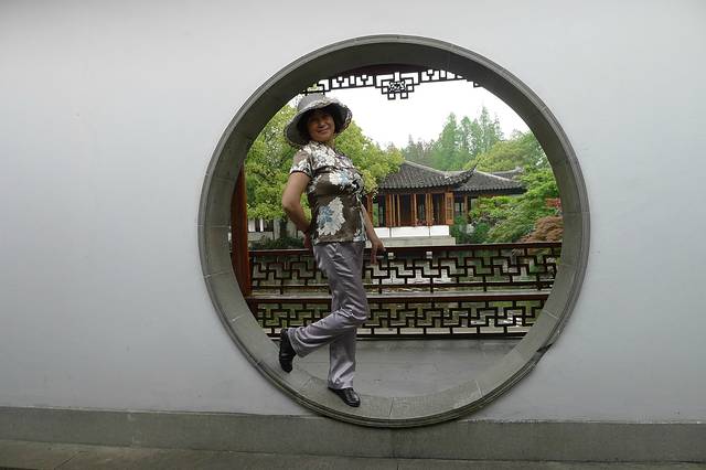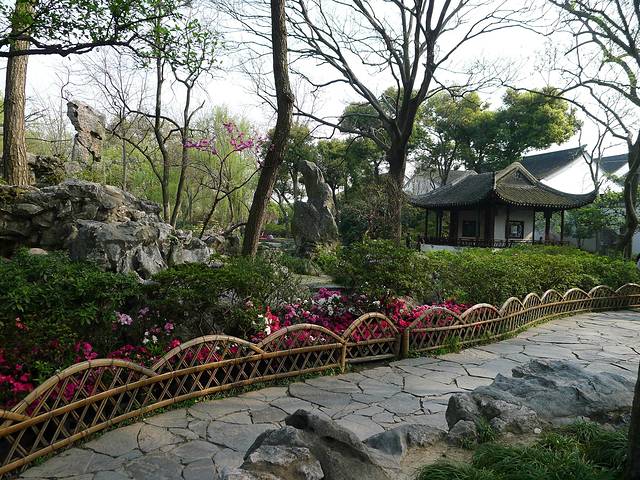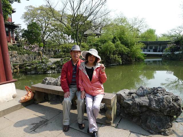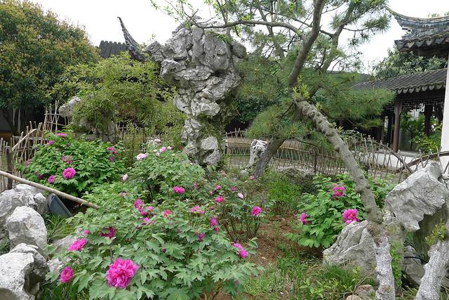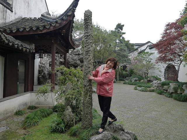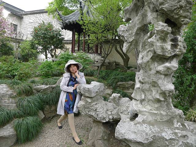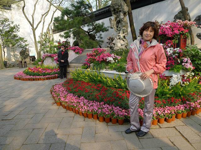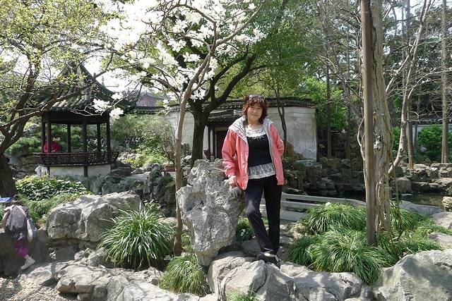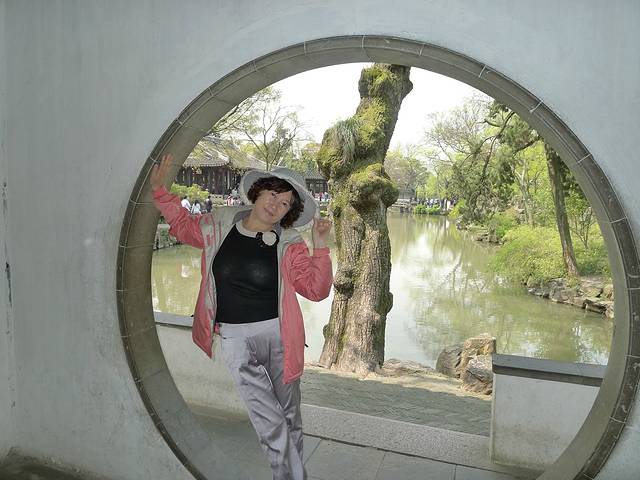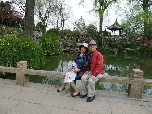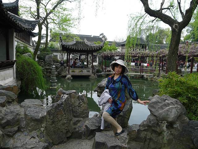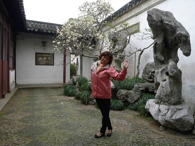 7/4:我发现清晨或是傍晚到景区,不仅游人少景色也好,初升的太阳和落日的晚霞照在人身上、景物上都 会增添色彩和美感,所以我们会尽早的出发、尽可能晚的返回,以至于爱睡懒觉老伴常常报怨起得太早。不到8点我们就到了拙政园,一进门就见照壁前由太湖石和各种鲜花布置的花坛分外漂亮,立即使我兴奋了起来,这里的美景真的是美不胜收。刚进园时光线好、游人少,拍了不少好照片,9:30后游人开始渐多。全园以水为中心,山水萦绕,厅榭精美,花木繁茂,具有浓郁的江南水乡特色。这里的美是我不能用语言、词汇能描述得出来的,拍照的水平也很有限,总之这里应该是喜欢园林艺术的人必到之处。12点多我俩才恋恋不舍地走了出来。这附近就是小吃街,匆忙解决午餐。13:30便进了狮子林。因园内“林有竹万,竹下多怪石,状如狻猊(狮子)者",又因天如禅师惟则得法于浙江天目山狮子岩普应国师中峰,为纪念佛徒衣钵、师承关系,取佛经中狮子座之意,故名“狮子林”。这里比拙政园占地小得多,也正是游团参观的时段,所以显得噪杂和拥挤。在我忙于躲避游人、欣赏景物、拍照留念时远在罗马的女儿来电话祝我生日快乐!我忙得早就忘了生日这回事。这的景色虽然也不错但我觉得远不如拙政园,给我的感觉有点像上海的豫园,由于占地小、景物多显得杂乱、拥挤。也许是由于游人过多,才加重了这种感觉。不过我俩玩得还是很尽兴,就这么一个小的景区我俩也转了3个多小时。