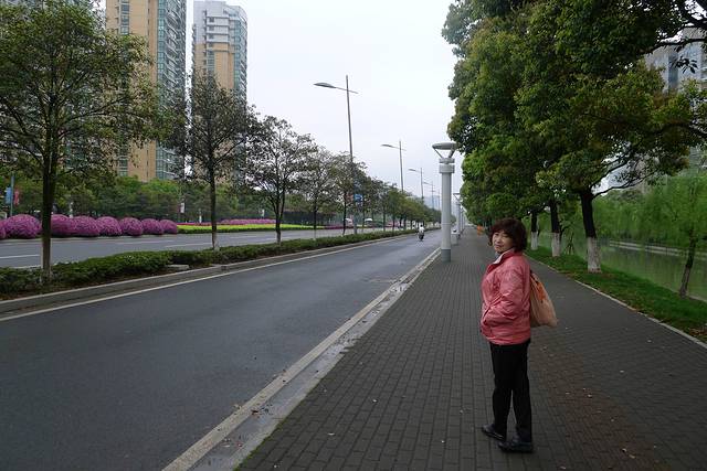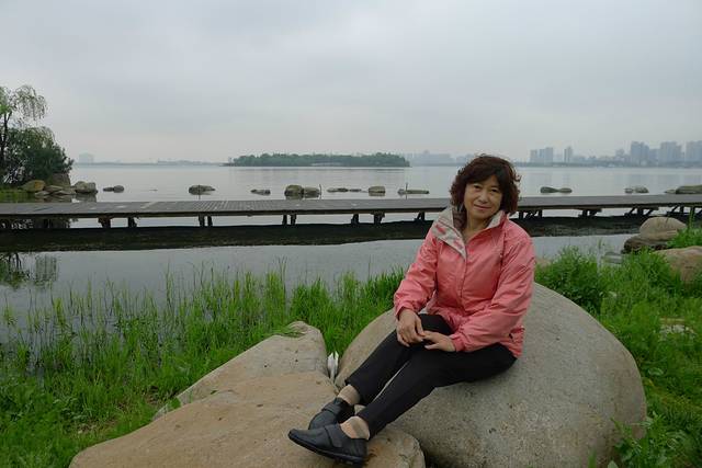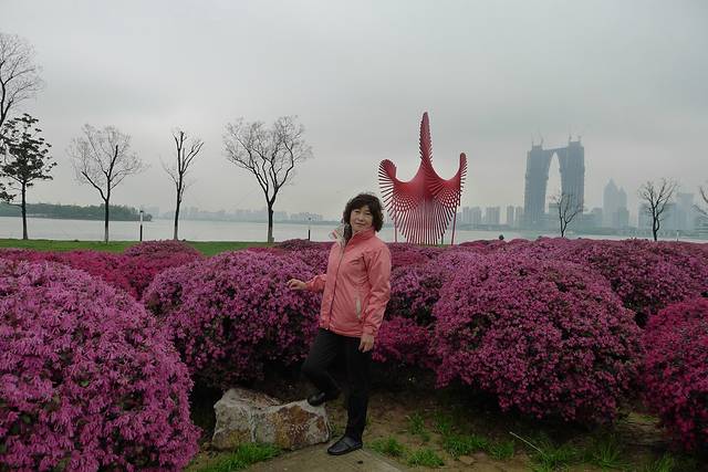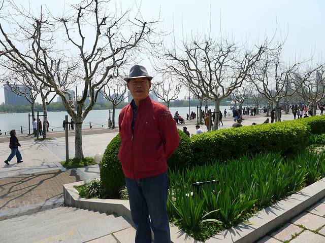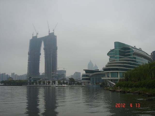 13/4:我记得09年随团来时到过一个叫个园的,可是地图上找不到,打听多人也无人知晓。我的行程断了。(后来问女儿,才知道是我记错了,应该叫定园。)定好了下午的车去杭州,还有半天的时间。老伴提议去金鸡湖景区,他又是听路人说的。由于我没做功课,只能边问边走。它在苏州的开发区,这边全是新的楼宇、新的街道,不仅楼高路宽绿化好搞得非常好。9:10下车只在附近的湖边转了转,瞭望这烟波浩渺的湖面,观看那烟雨朦胧景物,就知道这个景区很大很大,我们走错了地方,应该有更适合游玩的去处,10:15返回。虽然玩得不够尽兴,但也长了知识,原来只知道有太湖、西湖,今天又看到了金鸡湖的一角,留作下次再来……这次出行的住处都是出发前就网上预定好了的,杭州住在火车站附近。找到旅馆住下出门已近18点,解决肚子问题。