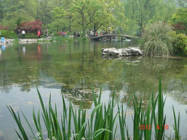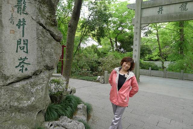 18/4 :西湖龙井茶太著名了,今天就慕名前去龙井村。8:50到达了据说是看钱塘江潮的地方,然后进入九溪,一直沿着溪水走,除了茶树几乎没什么景色,约11点来到了龙井村,进村前遇到一位50左右的妇女,一直将我俩带到她家,一家人倒茶递烟地很热情。盛情之下只得买 了些她家的茶叶。村口有处茶庄,看来是杭州市民来休闲品茗之处,12:20离开。又回到了西湖边,从黛色参天亭经一镜芳香、通利古桥到郭庄。郭庄很不错门票10元,里边只有几个休闲的市民,很温馨宁静,在里面转了四五十分钟。再向北走进了个不知名的小院后到了汾阳别墅,16点到达曲院风荷,这里的“绉云峰”,与苏州的“瑞云峰”,上海豫园的“玉玲珑”留园的“冠云峰”并称江南四大名石。这个区域慢走漫转至灯光亮起。来到音乐喷泉处,20点开始表演约50分钟,景色美音乐更美!这是我最早看到的最大的音乐喷泉,也是最好的一处,后来看过几个都觉得不如这里的好。
