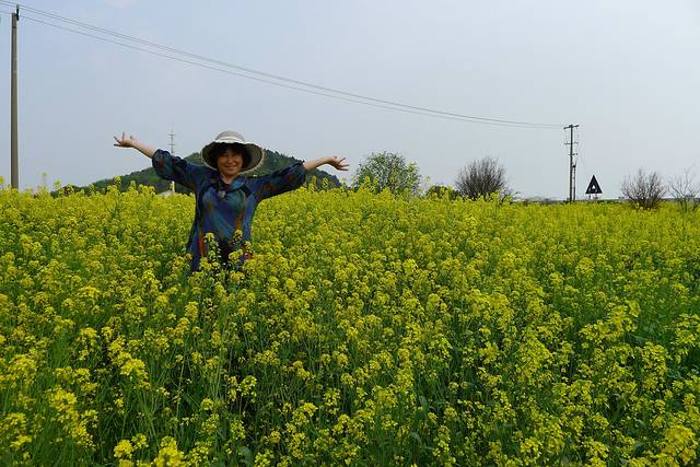 10/4:我们住的房子是一对年近八十的老夫妻将房子的一部分出租给了办家庭旅馆的。老人心态很好也很健谈,他们说:西山也挺好玩的。我俩就奔西山而去,那时的网络远没现在这样方便,边走边问地到达终点已是10:30了。下车的都是附近的村民,只有我俩是游客,向村民打听他们一脸的茫然。我俩只得即来之则安之,沿着湖走了好一阵来到了明月湾古村。古村保存的很好,白墙黛瓦、青石板路,只有我们俩个走在村子里,看了明月湾财神庙、黄氏宗祠。村口有一棵1200多年的古樟树还有一口2000多年前西施用的画眉泉。远远地看到一片油菜花田,跑进去玩了个够,这里的花比在上海时见到的花开得多也黄得多,我尝了尝还没成熟的油菜籽,有股淡淡的辛辣味,我很喜欢这个味道,所以这之后每当我遇到都不会放过品尝。来到了石 公山公园想买票进去,售票员说:里面是个寺庙。我觉得他不希望我们进,此时已是14:15了。来时的车上就看到路过木渎,遂决定到那下车,下车时15:12。木渎古镇有严家花园、虹饮山房、古松园、灵岩山、天平山等著名文物景点。我俩先到的严家花园,严家花园的厅堂建筑宏敞精丽,堂堂高显,显示出严正的气度和性格。而进入园区,其建筑则显得精巧活泼,丰富多彩,楼阁亭轩廊榭错落有致,富于变化,体现出造园者精湛的造园艺术。这个园子还真不小也很漂亮,见过多处都有似曾相识的感觉后才想起,这里09年和女儿随团来过了,只因当时人多限时,随着大队人马一路小跑、走马观花地游过了。这次看到了许多处上次没看到的景致。这之后也更加坚定了我轻易不再跟团出游的理念。走着走着下起雨来,江南的雨就是这样随时来也随时走,好在大都是细雨轻飘,对游览影响不大,特别是这种园林花园式景区。出门时已近18点,灯光已经亮起。关于西山,一则西山可能是苏州市民休闲度假的去处,二则也许我俩没找对地方。但我还是认为有收获、开眼界了。我觉得只要心态好,路上旨是美景。