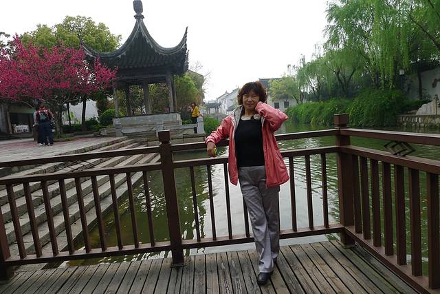 11/4:8:30再次来到木渎,先到了上次和女儿坐香溪游船上岸的御码头,然后参观虹饮山房,这由秀野园和小隐园二处明代园林联袂而成,其'溪山风月之美,池亭花木之胜,'远胜过其他园林。是清初木渎文人徐士元的私家园林,乾隆下江南每游木渎,必先在此弃舟登岸,入园游历。因而,当地都习惯称虹饮山房为乾隆的民间行宫。纪晓岚、和珅、刘墉等大臣也都曾数次下榻于此,留下了段段脍炙人口的佳话。此时游人不多几乎都是自由行的游客,漫步于清净安宁的院落里,看着旧时的楼阁亭轩廊榭使人仿佛觉得时光倒转回了那个时代,而我们也成为了富家的公子、小姐,嬉戏于花前湖边……至10:30离开。出门路经一座石桥10:50就到了古松堂,这个景区不大,只是联票中含有,我俩也有时间就进了去。这里几乎没有游客,也就一张合影也没拍上。我俩信步走着居然发现有个姚建萍刺绣艺术馆很不错。艺术馆的门脸不大,但里边的面积还不小是两层小楼,展品非常多,居然还是免费的,令我兴奋不已。这是我第一次见到如此精美、漂亮、逼真、众多的刺绣作品,个个都是精美绝伦、幅幅堪称绝世佳作。许多国家级刺绣礼品均出自于此。真的好想和每一幅作品合影。12:15到达榜眼府第,在此遇到了一对母女,女儿带着年近80的老妈已经走了好几个地方,这之后是要去同里。也勾起了我也想带老妈出游的想法。不大个院子,不到1个小时就转完了。在街边吃饭时老伴听人家说灵岩山,就极力主张前往,我作攻略时没看到过介绍此山。一路上都 是我说了算就听他的一次好了,13:50到达。爬了近一个小时的山,只见上面有一灵岩寺买票进入。寺内一塔 一殿,三五分钟就转了出来。老伴承认指挥错了。坐车路经一热闹地段便下果断车解决晚餐。吃饱喝足见不远处的景色不错就走了过去,原来这是盘门外的护城河和绿化带。边消食边拍照玩得也很开心。从17:30玩到18:40河两岸和桥上的灯光完全点亮 才打道 回府。