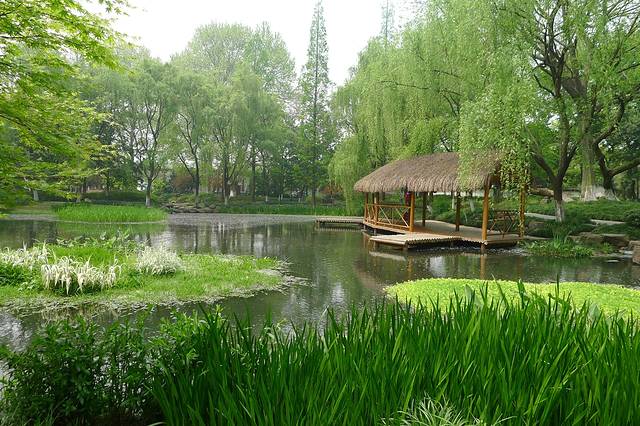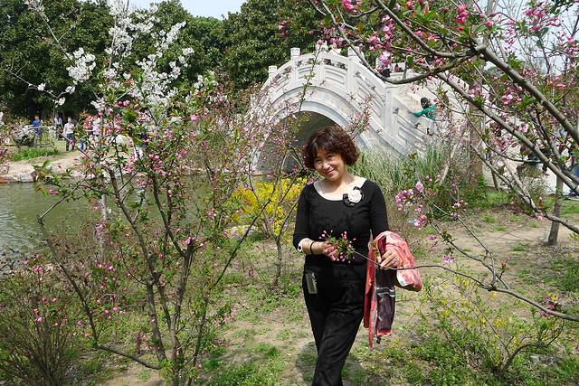 17/4西溪国家湿地公园在城的郊外的西北方我俩 尽早起床到那已经9:15。进入景区 走一段路经过一个自然古朴的小村落,然后坐了约十几分钟的摇橹船到了另一个稍大的村子上岸,这里是个商业街,此时已到午餐的时间,用过午餐随着人流走进了一片花的世界,原来这里是西溪湿地植物园,又遇上了花展。由于出游的时间选的好,走到哪里都赶上了花展,对于我这个酷爱花花草草的来说真的是天赐良机,我在花的世界里穿梭、在画的海洋里畅游……这的花展比苏州虎丘的占地大、品种多;比上海植物园的灵动、隽秀,因为不仅有湖水、有石桥,还有那摇动着的游船、漂浮着的花船,更有那美女映景,真的是美不胜收。从植物园出来已近16点半,想着不能原路返回见着大的叉路就走了上去,又遇一小叉路,便向里走去竟然走到了洪钟别业这是一座非常漂亮的小别墅,夕阳下的景色更加妩媚。这里游人很少,给人的感觉是宁静淡泊,远离喧嚣的归隐气息,庭院布局精巧、错落有致。走至临近出口时经人指点又来到了高庄,此时工作人员就要下班了,他锁上正门让我们从后门出去。我俩高高兴兴地玩了个够,出门时路灯已经大亮了。我俩原以为多赚了两个景点,回来查图一看我才知道若大的西溪湿地我们只走到了一小部分,只得“下次再来”了。此次出游看到的花比我之前大半生所看到的总合还要多,更重要的是看到了许多以前从未见过的品种。