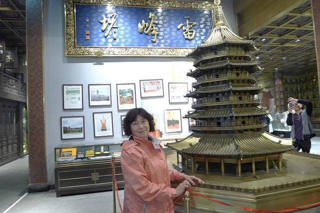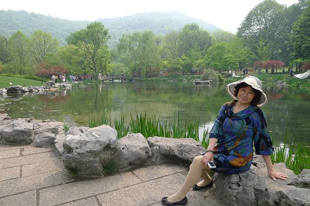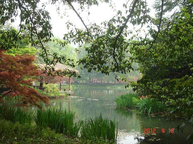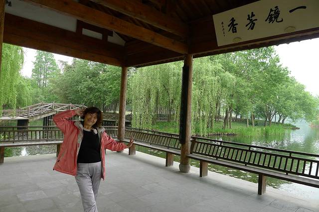 16/4今天从雷峰塔处沿西湖向西走,百寿图的字很漂亮,雷峰塔内需另购票就没进去,过了南屏晚钟走入了一个很漂亮的公园,游玩了好一阵子才知道 是太子湾公园,这里有好几对拍婚纱照的。从9:50到15:10雷峰塔外围和一个太子公园竟然转悠5个多小时。走出来看见电瓶游船我俩也爽了一把,每人10元就一小会。走过映波桥进入花港观鱼和牡丹园芍药园,这是个著名景点09年时随团来过的。此时已经16点多游人很少,我俩尽情的玩、可劲的拍。16:50走入了魏庐,旁边还有个将庄,挺漂亮的,只有我们俩个人。18:30返回。忘记了在哪条街哪家店吃的西湖醋鱼,真的挺好吃,非常鲜嫩,油盐糖醋都恰到好处。也忘了是哪天晚上在哪吃的叫花鸡,因为没觉得有多好吃,所以并没留下深刻的印象。