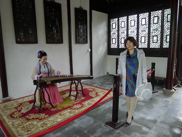 9/4:刚刚8点我们就进入了留园。留园以园内建筑布置精巧、奇石众多而知名,与苏州拙政园、北京颐和园、承德避暑山庄并称中国四大名园。留园为中国大型古典私家园林,占地面积23300平方米,代表清代风格,园以建筑艺术精湛著称,厅堂宏敞华丽,庭院富有变化,太湖石以冠云峰为最,有“不出城郭而获山林之趣”。其建筑空间处理精湛,造园家运用各种艺术手法,构成了有节奏有韵律的园林空间体系,成为世界闻名的建筑空间艺术处理的范例。我觉得这里聚集了拙政园和狮子林的精华,一楼一阁一亭一榭都 布置得恰到好处、一山一水一花一木都安排得别具匠心,行走在石桥上画廊内、移步于庭院里曲径中、慢踱在绿树下花草间,令人倍感神清气爽、心旷神怡。由于我们到得早,待我们转完了一圈,游人渐多了起来。这时园内有多处衣着明清时期服饰的人,船上弹琴、楼内奏曲、阁中演评弹;庭院里小姐丫环漫步、公子仆人穿梭,为这本就华美的林园增景添色。时近12点我们才恋恋不舍地走出来。吃过午餐便掉起了雨点,见雨没有停停歇的意思只得打道回府。约15点见窗外的雨小了,查得耦园距我们住处不远,便催醒熟睡中的老伴起身前往,15:40就走到了。这里当然没法与拙政园和留园的大气和奢华相比。但这里粉墙黛瓦,映衬着小桥流水,颇有江南水乡风韵。西花园环境幽雅宁静,具苏州书斋花园的特色。虽然雨一直淅淅沥沥地下,但一点也没影响我俩浏览的兴致,直到17点多才走出来。