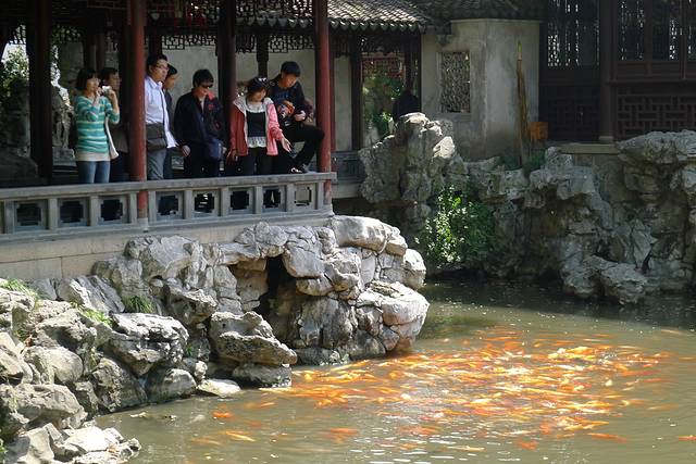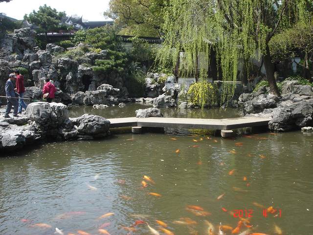 1/4昨天累了今天睡到自然醒,时近11点才来到城隍庙,见到卖榴莲酥买来偿,一吃便知都是些化学香精调出的,口感、味道都不好。11:30进入豫园,12:45离开,这里的人好多啊!近一半是外国人。园内有穗堂、铁狮子、快楼、得月楼、玉玲珑、积玉水廊、听涛阁、涵碧楼、内园静观大厅、古戏台等亭台楼阁以及假山、池塘等四十余处古代建筑。三穗堂位于豫园正门处,清乾隆二十五年建。原为乐寿堂,清初曾被征为上海县衙办公之地,改建西园时重筑为三穗堂。别处私家园林可用三步一物、五步一景来形容,这里就得用步步是物、处处皆景来比喻。城隍庙这有一家包子铺15元一笼,见到排着长长的队伍,自然也跟着凑趣,本应买两笼足够,为了排得值,只得多买了一笼。饱餐后再向里走便见正在举办美食节,占地好大、好热闹啊,一圈转下来,又买了好几样,足够明天一天吃的了。坐车返回时见到一个公园立即下车走了进去,这是复兴公园,里面除了一个马克思和恩格斯双人的雕塑外,好看的花都没见到一朵,只得悻悻而归。