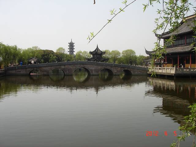 12/4:昨天走的有点多,8:20才到盘门景区有著名的“盘门三景”瑞光塔、吴门桥和盘门城楼主要景点有陆城门、水城门、吴门桥、瑞光塔。这里的40元门票含摇橹船,登塔需另付6元。这里占地不小、景色不错,是自然景观和文物古迹 并存之处,这里即有私家园林的精美又有自然景观的大气,这又不是游团的必到之处,所以非常清静、温馨,是自由行的绝佳去处。入门不久就来到了摇橹船游 处,船只走到吴桥处就原路返回行程不远。盘门湖里的锦鲤很多很大很漂亮,几乎将我自备的午餐干粮全都喂了它们。最后每人6元登上了瑞光塔,在塔 上可以360度俯瞰盘门景区及城区,12:40离开。近16点到达枫桥景区,枫桥风景名胜区是以寒山古寺、江枫古桥、铁铃古关、枫桥古镇和古运河“五古”为主要游览内容的省级风景名胜区。这里的人文气息浓重,到的晚了没进寒山古寺,只在寺外拍了几张照片。18:20离开。苏州的公交站设计得与这座城市的风格很协调,我喜欢这座城市!