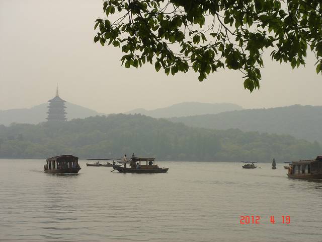 15/4:今天先去办里了两张共享单车卡,特别点赞12年的杭州就已经开启了共享的理念。非常方便尤其是对于我们这些外地穷游的人来说,简直就是造福。10:10到达西湖,今天是从六公园开始沿湖向北走。参观了一个留青艺术馆 ,里面的雕塑很富有美感。从风波亭、断桥经白堤12:50到平湖秋月,这一路人非常多,一问才知道是周末。在平湖秋月处休息午餐后走进了中山公园,这里游人极少、草木繁盛。15:30到岳王庙16:30离开。去坐游船杭州运河夜游的地方挺远的,不能踦单车。游船19:30出发,往返约1个半钟头,游船夜游实际上就是看两岸的灯光,这条运河的夜景的灯光远没有09年和女儿在苏州那次看到的好看。