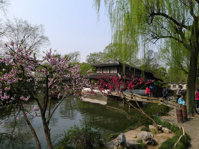 8/4:我们到达网师园时还没开门呢,周边转转后成第一个进入园的人。网师园为典型的宅园合一的私家园林。住宅部分共四进,自轿厅、大客厅、撷秀楼、五峰书屋,沿中轴线依次展开,主厅“万卷堂”屋宇高敞,装饰雅致。不知道是因为我们到得早,还是游团不来这,总之游览完整个景区我俩也没遇上其它游人,以至于连张合影也没拍上,这就如同我家的后花园。虽然今天的能见度不高,我俩仍玩得很惬意、舒心、尽兴。7:30入园快9:15才离开。我觉得这个景区非常不错,希望有机会能再来。出了门经人指点9:40走到了沧浪亭。园内除沧浪亭本身外还有印心石屋、明道堂、看山楼等建筑和景观。这里很一般,对当地居民应该是免费的,里面有好些休闲的市民。走出不远就见到碑刻博物馆、文庙,有文庙自然就有大成殿。此时太阳出来了有点热,决定回住处午餐、休息,待晚些时候再出来。苏州的公交非常方便,各个景区公交大都可抵达。约15点我们来到了虎丘风景区,适逢这里在搞虎丘艺术花会,这对于对花草情有独钟的我来说是个绝佳的机会。这里有好几处主题花展,游人不是很多,我可以长时间地住足、尽情地欣赏。这里有好多处有些年代的文物古迹。云岩寺塔的沧桑感竟然能与美感共存!离开时已经夜幕降临。自由行就是可以这样随心所欲,想走就走想停就停,拍照遇上游团来了人多时让他们先拍,所以我的照片中通常单人照。这以后开启了我自由行的欲望,并一发不可收拾。
