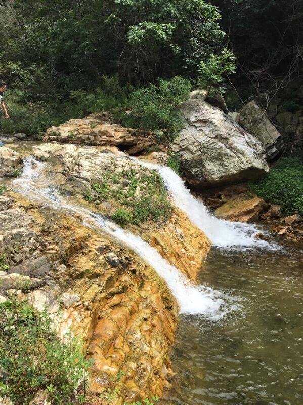 走到一个水潭处,没有路了,又不甘心走回头路,就跨过小溪准备到盘山 路上,结果没走好,掉水里了,鞋子全灌满了水,裤子也湿了,又没有带备用鞋子,只能将就着走了,好在没有受伤。