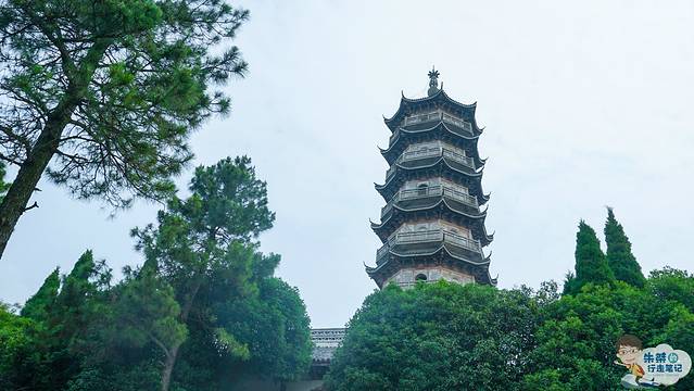 鼓山塔塔高46.8米,为当代 新建 一座楼阁式,八角七级,明七层暗八层的古塔。整个鼓山绿意盎然,驱车与 石林 之间,宛若穿梭于绿野仙踪的秘境之中。唯一的山道两旁古木参天,每一棵青翠松柏粗壮的枝干都已经证明这座山的人为历史是有很深很深的底蕴。