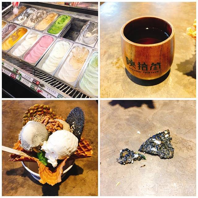 『陕拾叁』。西安本土“哈根达斯”,选了四种口味的,抹茶、醪糟、红茶拿铁、芝麻大理石,可以加三种干果,又要了下面的脆皮托,一共49块钱。