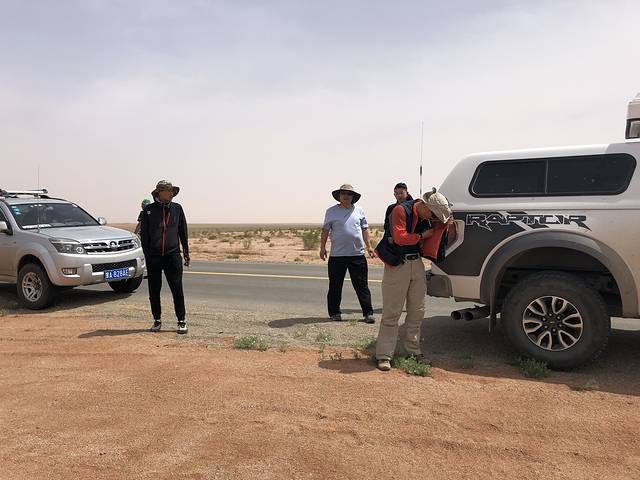 开车技术炉火纯青的乾峰哥,本想于开车间隙吞云吐雾,放松解乏,岂料阿拉善的风沙长驱直入,让防风神器zippo也罢了工。此情此景,让我想起了爷爷曾经描述的沙尘暴场景:瞬时间风霾大作,天地间一片混沌。所幸,经过几十年的努力,这种现象已慢慢绝迹。