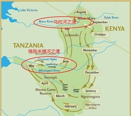 如图,一来七月份动物大部队仍在坦桑尼亚,二来七月份的马拉河之渡发生在坦桑尼亚,所以七月份去肯尼亚看啥呢?清醒一点!