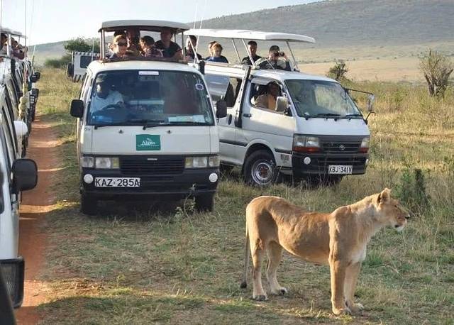因为肯尼亚旅游宣传做得较好,所以每年光是我国,就有数万游客涌入肯尼亚观看动物大迁徙,近两年来更是被过度商业化,使得野生动物数量锐减,见惯人类而失去灵气。所以你在肯尼亚很可能看到这样的情景↓↓↓