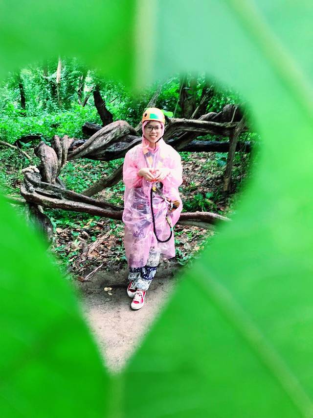 导游很会撩女,把树叶撕成心形,给我们拍照,哈哈!