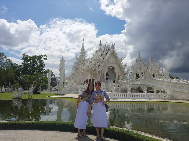 因为在淘宝买了一日游去黑白蓝庙,价格:290元(包午餐,自助餐):早上睡到7点,8点的导游开始接人,去程3个半钟,回程三个半,回来已经9点了,然后就去了酒店的无边游泳池,可惜没带泳衣,做了个马杀鸡,第二天行程结束(建议带点长裤去清迈,去寺庙要穿),感觉东莞热过清迈。