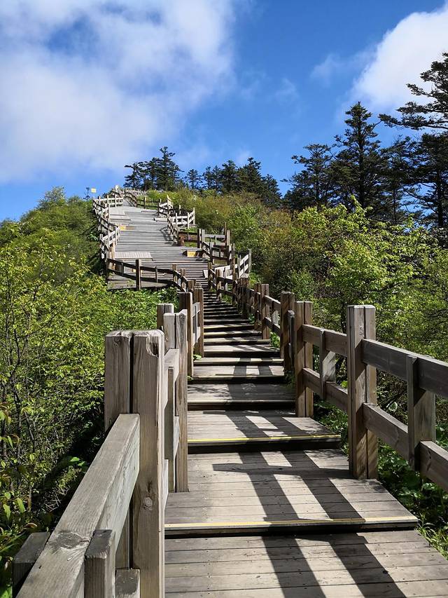 木头栈道从日月坪开始伸展开来,直到隐匿在远处的丛林里。