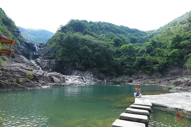 瀑布下方的仙女潭水深18米,可以到浅水区游泳,也可以玩漂流项目,保证你尖叫连连。