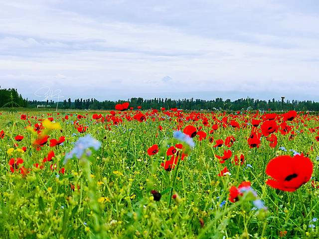 天山红花,又名野罂粟花,这个季节正是它绽放极致之时,一年花开时长只有短短的十几天。
