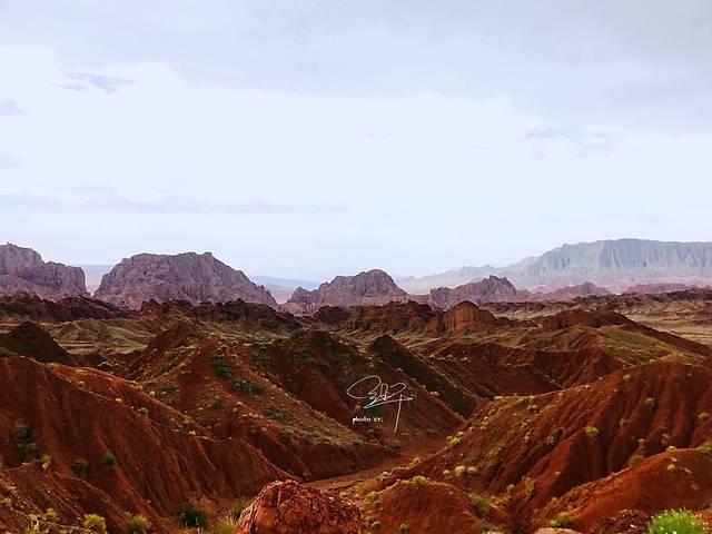 绕过一个又一个的弯道,呈现在眼前的景色直击人眼球,与一大片深红色形态各异的山体完美相遇。据说前段时间有剧照在这拍戏,一大波明星在这合影留念。目前这地区还未开发,完全的原生态景观。(注:纯属私人定制路线,如果想感受它的震撼的话请找我朋友薛刚,联系方式私信哈。)