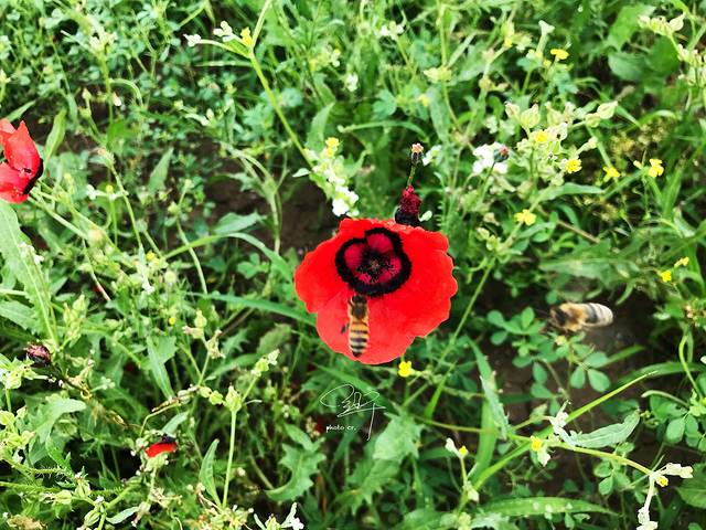 勤劳的蜜蜂在采蜜,在一旁的我们都不忍心去打扰它。