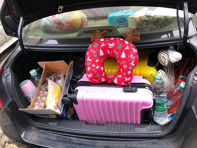 准备好昨天晚上购买好的各类食品和水果等物品,还带上了箱子,用来装衣物。万事俱备 ,只欠发车。