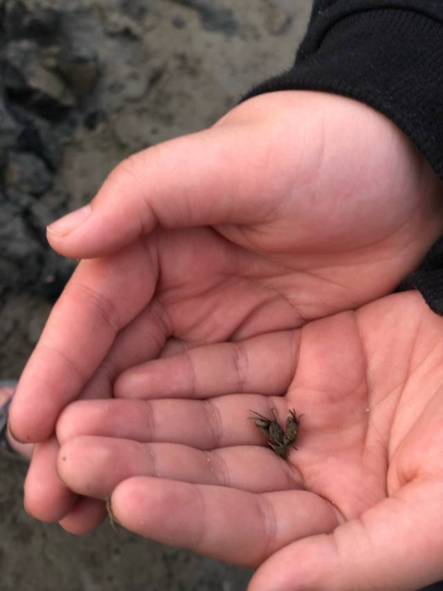玩着玩着,不一会儿,我就挖了一个巨大的沙坑,弟弟发现了,就向我走来,一屁股坐在了沙坑里,还调皮地把沙滩边缘的沙子推到沙坑里来,我看了,也跟着玩了起来。